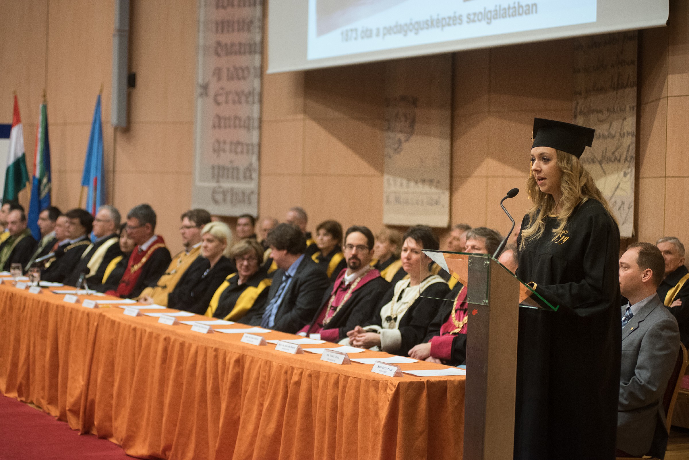 A Juhász Gyula Pedagógusképző Kar frissen végzett hallgatói február 3-án, vasárnap vehették át okleveleiket a József Attila Tanulmányi és Információs Központ Kongresszusi termében (Szeged, Ady tér 10.).