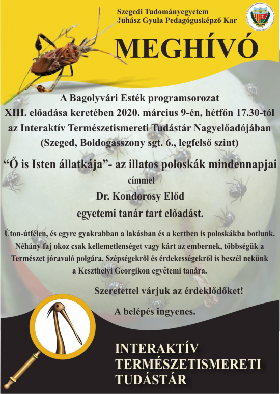 A Bagolyvári Esték programsorozat XIII. előadása keretében 2020. március 9-én 17:30-tól várják az érdeklődőket Dr. Kondorosy Előd egyetemi tanár előadására az Interaktív Természetismereti Tudástár Nagyelőadójában.