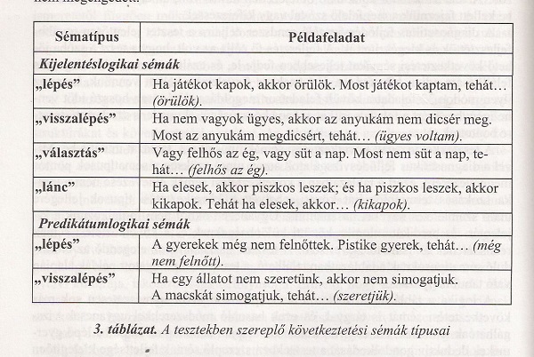 Tapasztalati következtetés:A deduktív következetés, a kijelentés- és predikátumlogika alapvető deduktív sémáinak használata az úgynevezett kritikus kognitív készségek egyike. A tapasztalati következtetés esetében a műveletvégzés kizárólag a gyermek személyes tapasztalataira és a mindennapi szituációk nyelvhasználatára épít (Vidákovich, 2004)