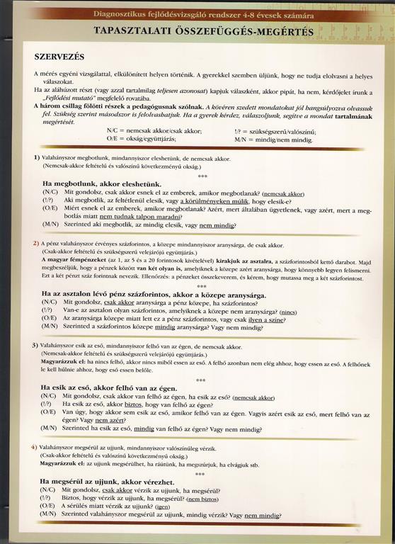 A gyermek akkor kapja a jó megoldás jelét, ha a tesztlapon aláhúzott kijelentéseket, vagy azok tartalmát válaszolja meg.
