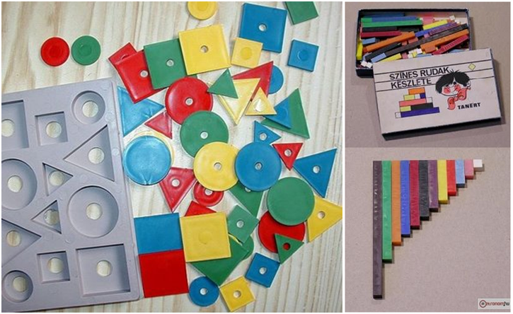 A manipulatív feladatok megoldásának eszközigénye: logikai játék és színesrúd készlet.