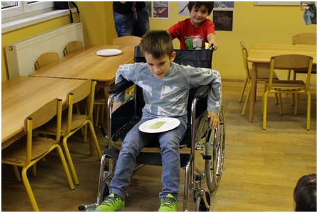 - közlekedés kerekesszékkel teremben és szabad téren, akadálypályán