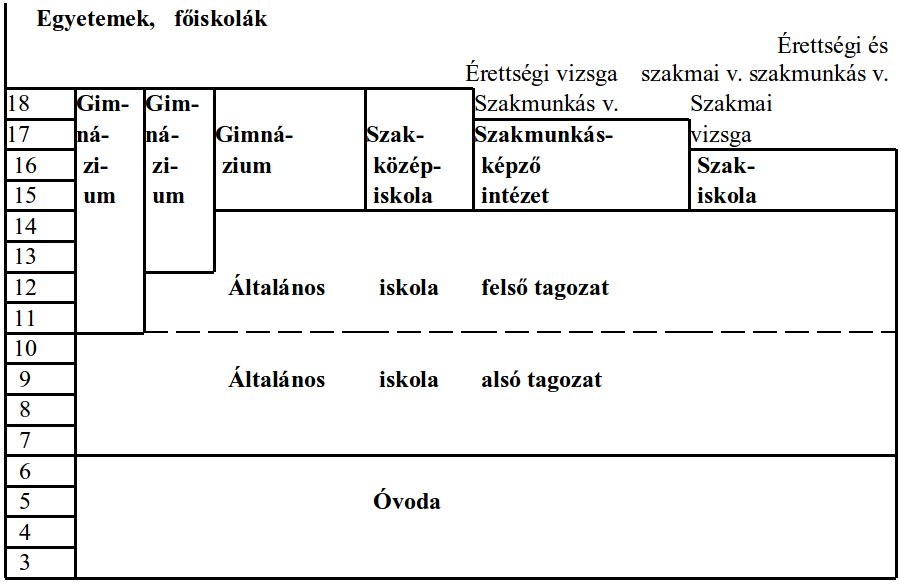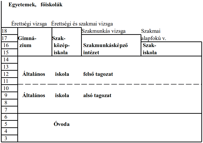Az 1961-es oktatási törvény utáni magyar iskolarendszer elemeit a következő ábra szemlélteti: