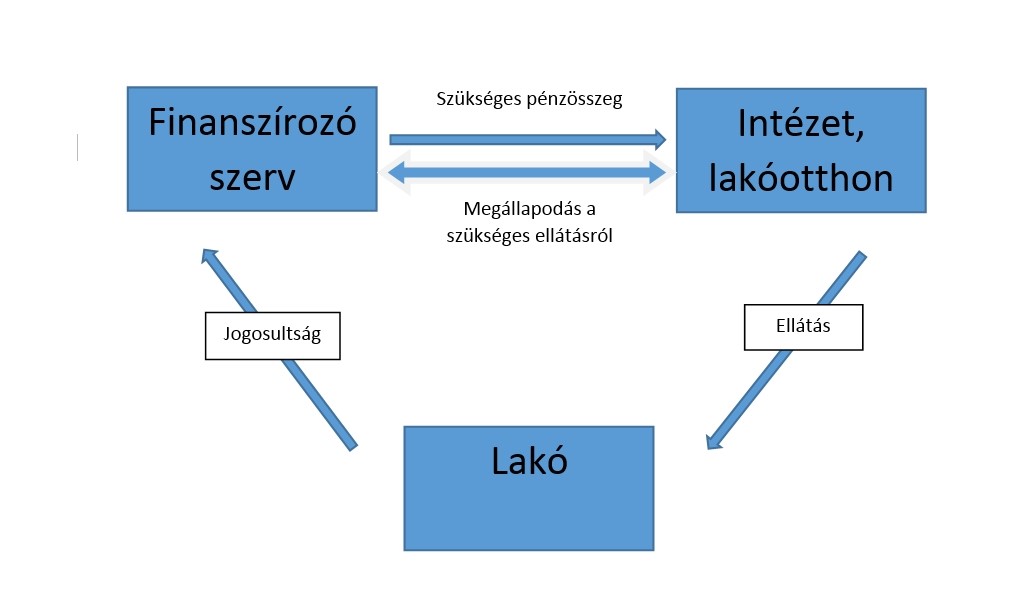 A következő ábra jól szemlélteti, hogy a „hagyományos” ellátás kialakítása hogyan is zárja ki a folyamatból a fogyatékos személyt. Az ily módon kialakított ellátásnál a fogyatékos személynek gyakorlatilag alig van beleszólása a saját életét érintő kérdésekbe, s mintegy passzív alanyává válik azon folyamatoknak, melyek eljövendő mindennapjait meghatározzák. Az így kialakított szolgáltatások a totális intézmények működési rendszerébe jól kapcsolódnak. A fogyatékos személy számára nyújtott szolgáltatás előre meghatározott, nélkülözi a személyesség, az egyéni figyelem elemeit. Nyilvánvaló, hogy az így kialakított a szolgáltatásokat (ellátásokat) az érintett csak akkor és kizárólag veszi igénybe ha nincs lehetősége más irányba kitérni.